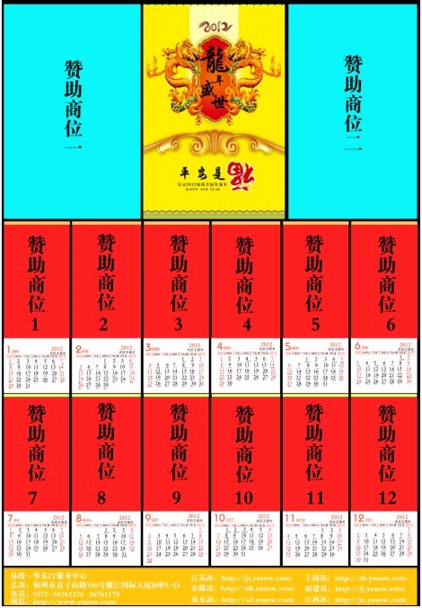 时间飞逝,转眼2011已接近尾声,2012的元旦和新春佳节脚步越来越近了,2011对于易搜和您来说是收获的一年,是飞跃的一年,更是我们大家难忘的一年。当然这与华东地区广大客户的大力支持和帮助密不可分的,是你们的大力支持,才有我们易搜的全面发展。为此,我们特推2012年龙年对开大小挂历,向一直以来关心、支持易搜发展的社会各界人士表示最衷心的感谢!样本如下图: